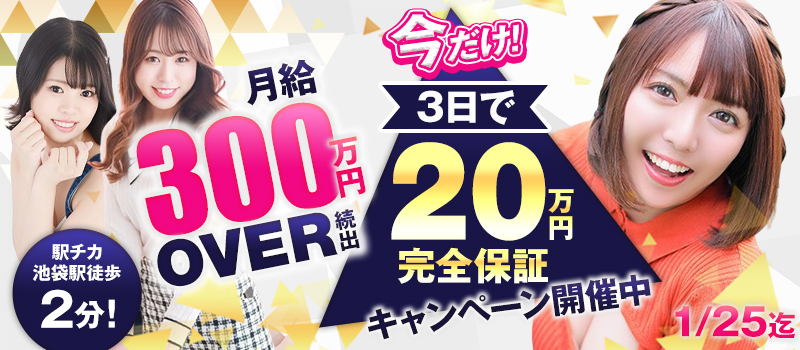 給料保証 4~7万円 交通費 交通費往復支給 宿泊 宿泊費サポート 食費 食費サポート 勤務地 東京都 豊島区西池袋 1-36-9 交通 JR・各線池袋駅 西・北口より徒歩1分 給与 日給80,000円以上可☆月収300万円overの女性が多数在籍しております♪ 応募資格 20歳~29歳位迄※未経験者の方も大歓迎!やる気さえあれば採用率は100%です☆ 短時間でガッツリ稼ごう!3時間で大3枚は稼げます!! 池袋の超人気店だから出来ることがあります! ■グループ年間宣伝広告費12億円以上! ■グループ会員数85万人以上! ■1日の来客数300人以上! 稼ぐ秘訣は来客数にあった!!! 当店だったら、お茶ひきの時間なんて全っ然ナッシング! 出勤した全ての女の子が必ず稼げる! それが当店の自慢です!! 女の子の為の充実待遇も要チェック!! ■ヘアメイクさん常勤!セット無料! ■女性アドバイザー(講習員)在籍! ■池袋駅から徒歩2分の超・好立地で通勤のストレス無し! ■ノルマ、ペナルティ一切なし ■お給料は完全日払い制 ■衛生器具完備 ■しっかりしたコンセプトがあるお店! →20代の子がコンセプト! 未経験でプロっぽくないっていうのが最大のセールスポイントになります! だから!!初めての女の子に最適のお店なんです♪ ■「早朝でもOK!」自由度の高い出勤時間 →昼職をしていても、出勤前にひと稼ぎ出来ちゃいます。 →→仕事の前に3時間だけ出勤して、ひと月67万5千円を稼いでいる子もいるんです。- ボーナスあり